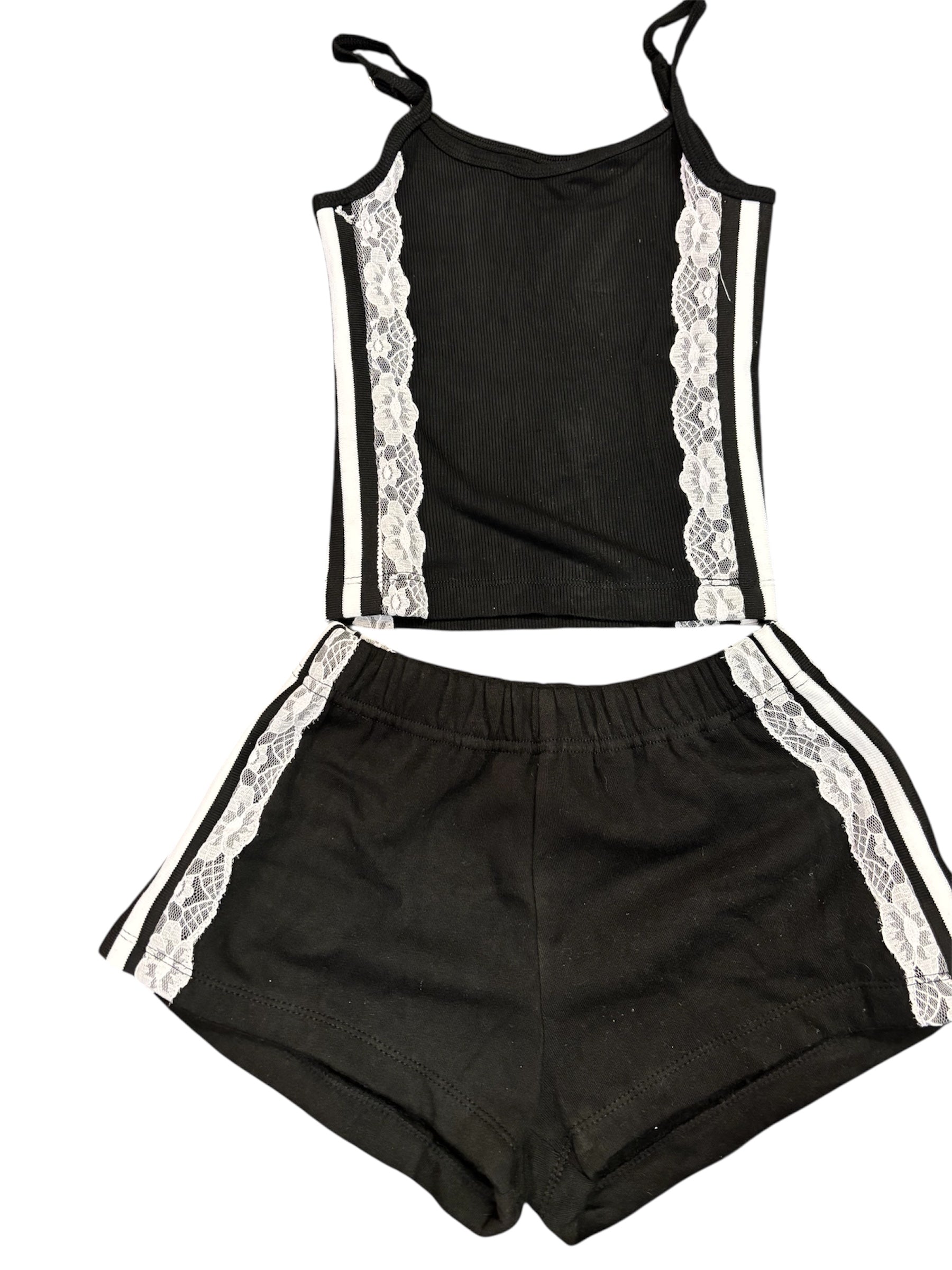 Black & Cream Lace Short Set